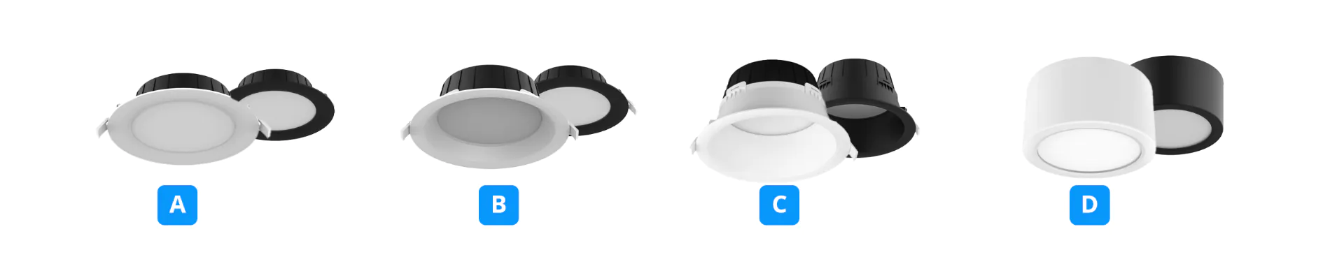 Met keuze uit drie uitsparingen - 120 mm, 140 mm, 180 mm - passen deze downlights dikwijls in je lichtproject / bij het verzoek van je klant.