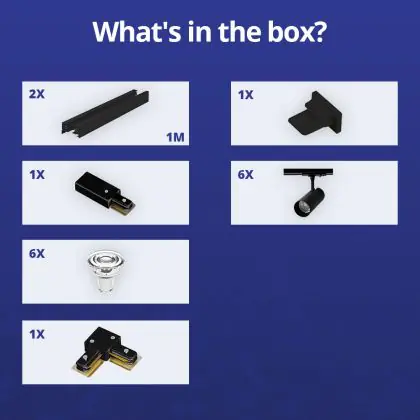 | Fabrikantnaam | Complete L shaped 1-Phase Track Set Black incl. 6x Spot fixture + GU10 2700K 3W Dim – 1 x 1 meter i | |
