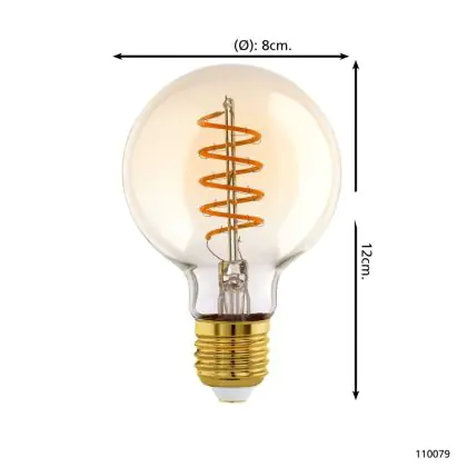 Beschrijving Eglo LED Globe E27 Filament Amber 4W 245lm - 820 Zeer Warm Wit | Dimbaar - Vervangt 25W