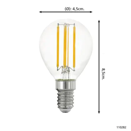 Beschrijving Eglo LED Kogel E14 Filament Helder 2.2W 470lm - 830 Warm Wit | Vervangt 40W