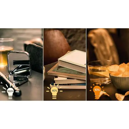 4. Dim to warm: Door te dimmen wordt het licht warmer (geler). Hoe meer je dimt, hoe warmer de kleur.