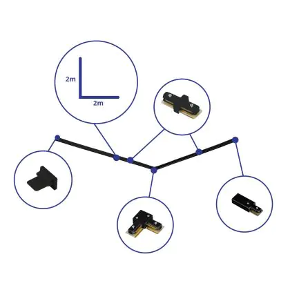 Beschrijving Rail Set 1-Fase L 2 x 2 Meter Zwart |incl. Eindkap, Voedingsconnector en L -Verbindingsstuk
