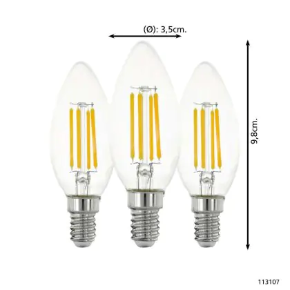 Beschrijving Voordeelpak 3x Eglo LED Kaars E14 Filament Helder 21W 806lm - 827 Zeer Warm Wit | Vervangt 60W